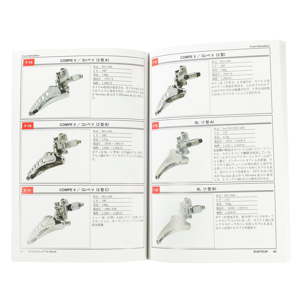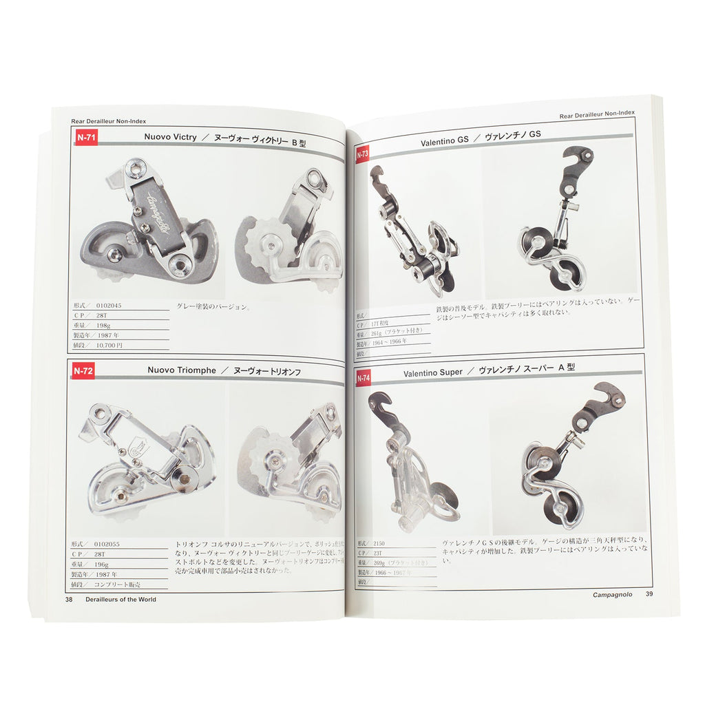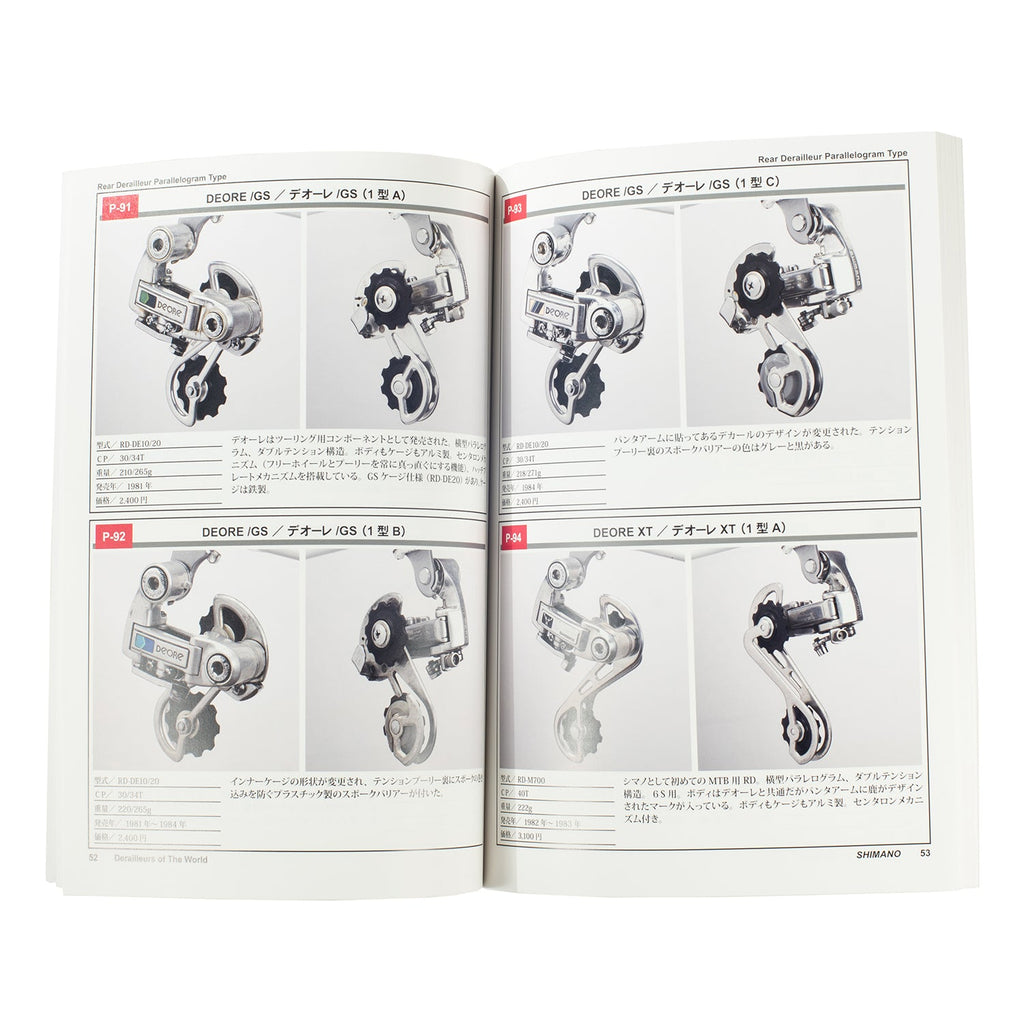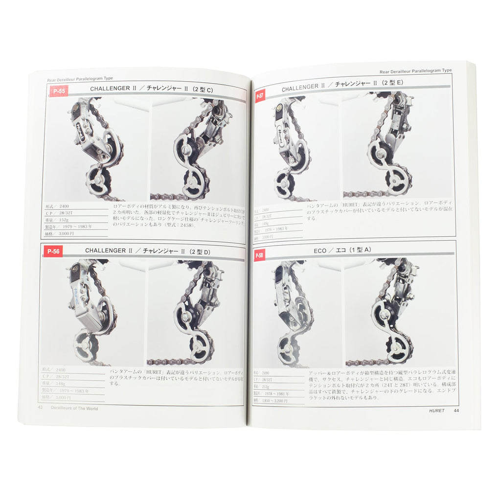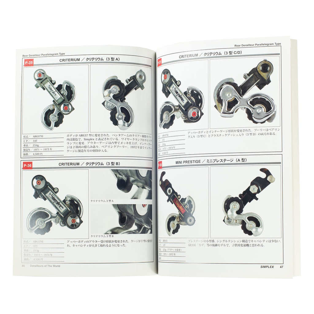 変速機データブックは、自転車の変速機に特化した資料集であり、著者の長年にわたる研究と収集の成果が詰め込まれた一冊です。カンパニョーロ、サンプレックス、サンツアー、ユーレー、シマノといったメーカーごとに刊行されており、各変速機の仕様、製造年、モデルの特徴だけでなく、貴重な写真や図版も豊富に収録されています。